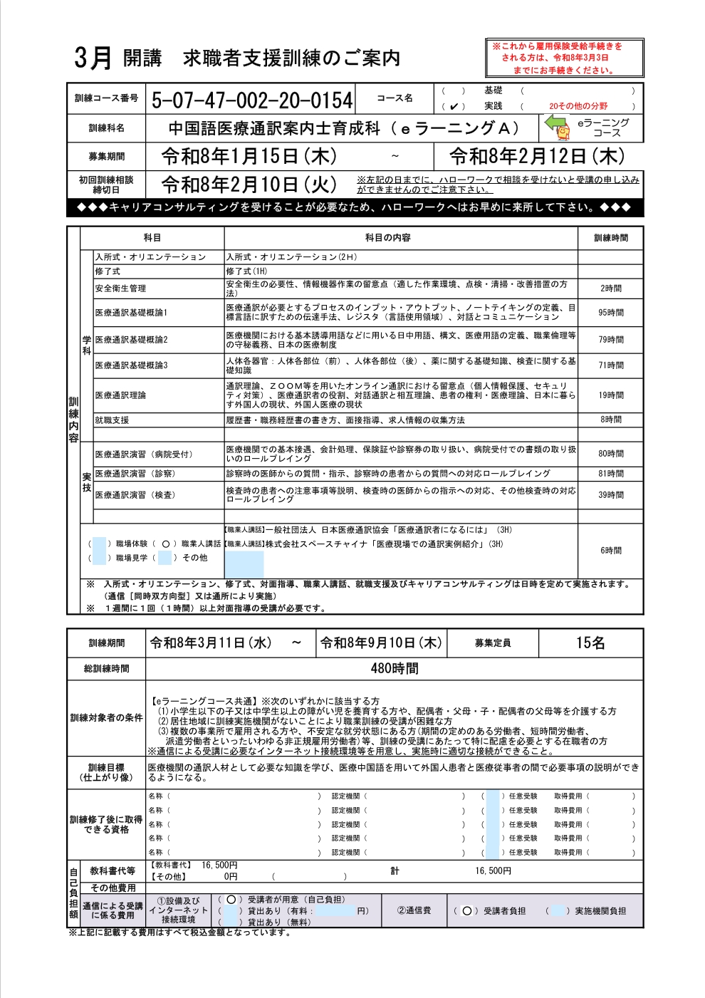 訓練期間:R8年3月11日(水)~R8年9月10日(木)